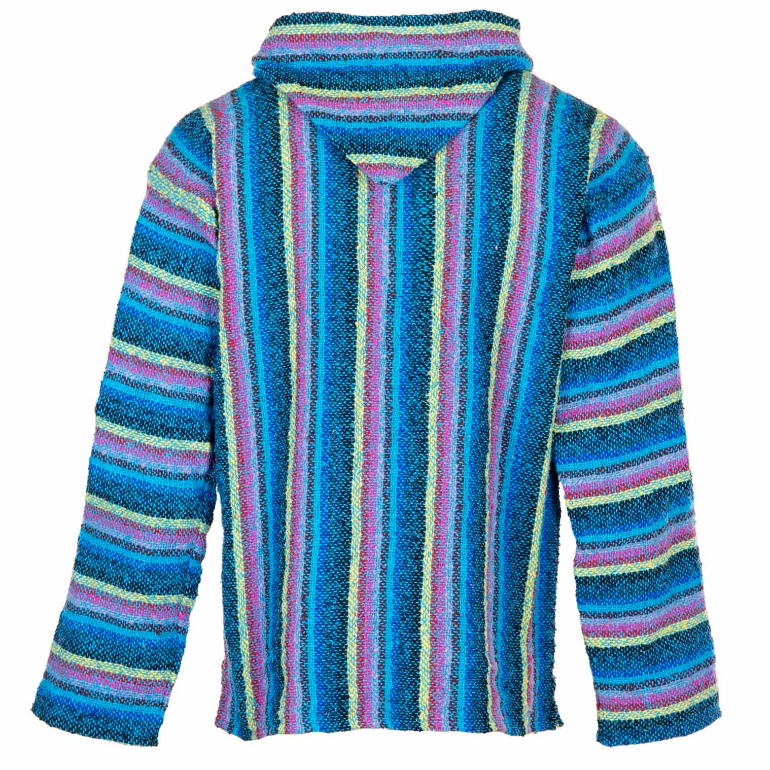 Our Mexican Baja tops are made using a cotton/acrylic yarn produced from recycled fabrics which makes them a great eco conscious choice. Popularised by 1970's North American surf culture, these relaxed hippy style classics have never gone out of fashion and are perfect for those cool summer nights in the festival field. With kangaroo pockets, a handy hood and a durable exterior with a soft, brushed interior; they are ever popular for outdoors activities.