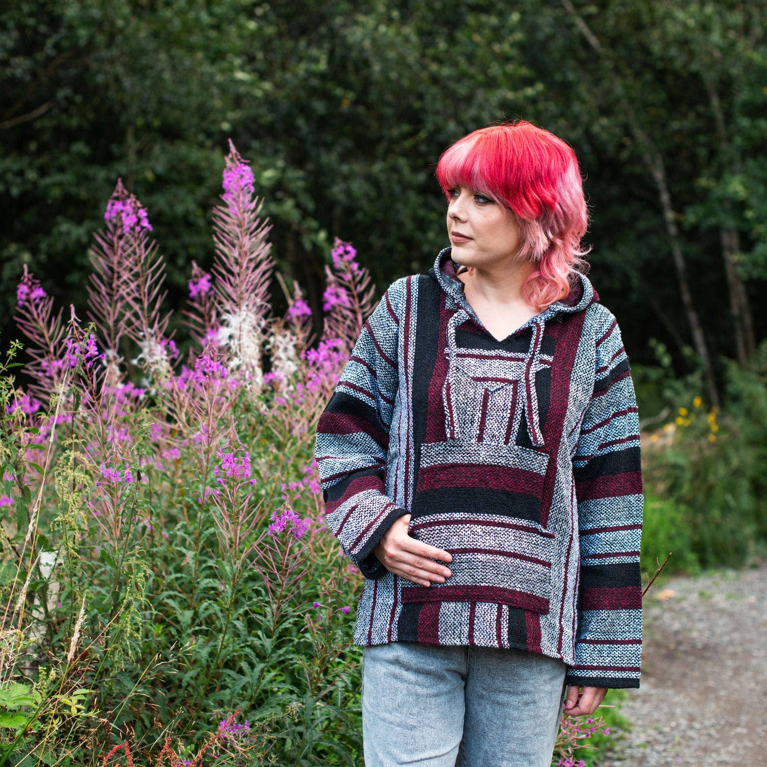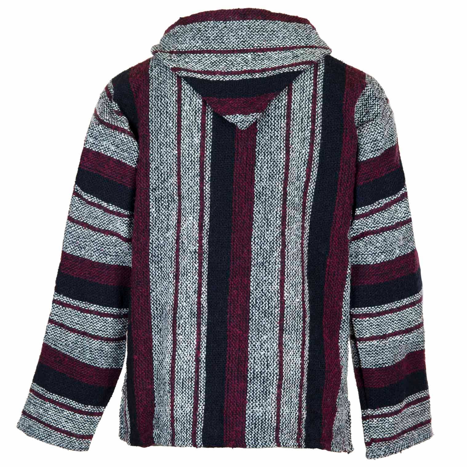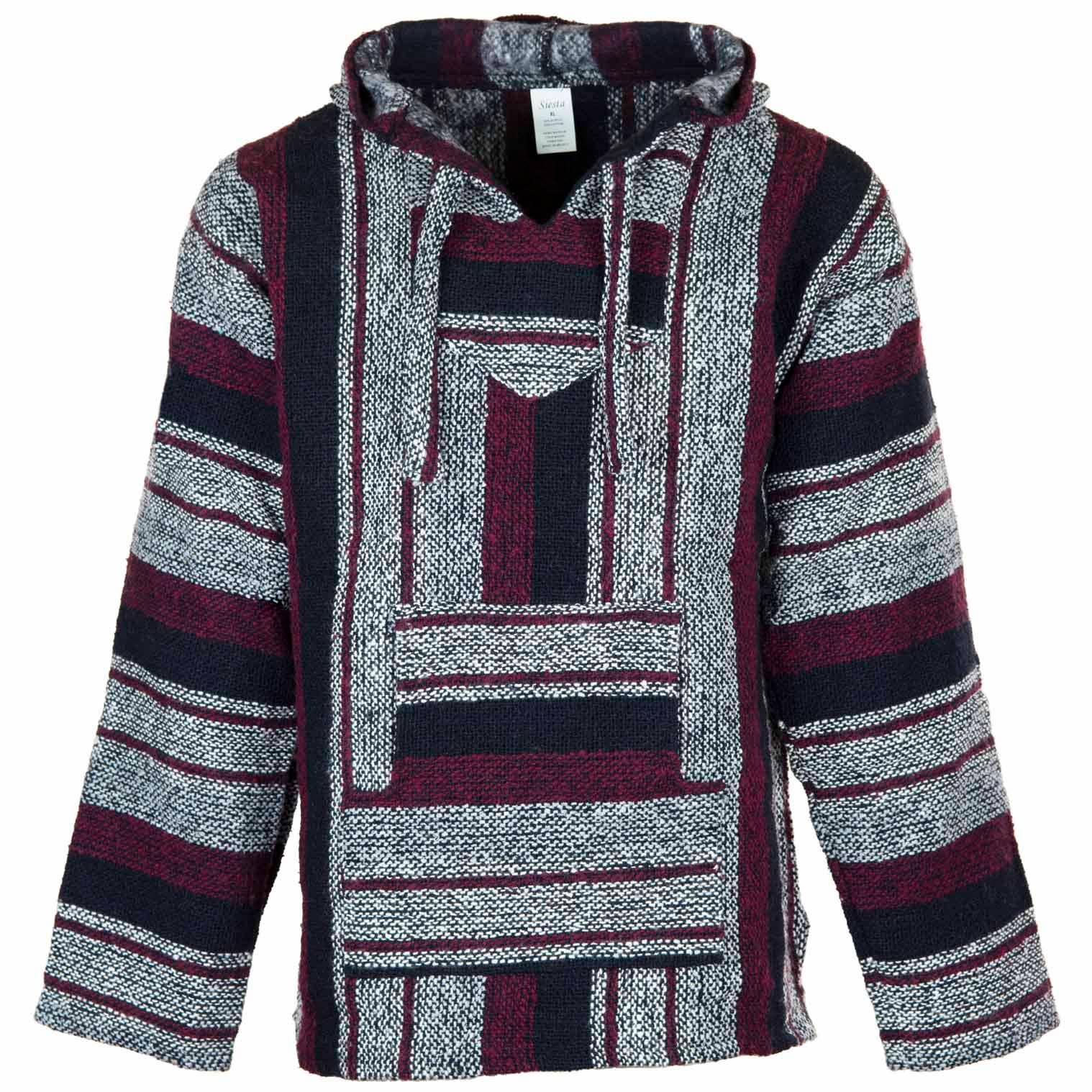Our Mexican Baja tops are made using a cotton/acrylic yarn produced from recycled fabrics which makes them a great eco conscious choice. Popularised by 1970's North American surf culture, these relaxed hippy style classics have never gone out of fashion and are perfect for those cool summer nights in the festival field. With kangaroo pockets, a handy hood and a durable exterior with a soft, brushed interior; they are ever popular for outdoors activities.
