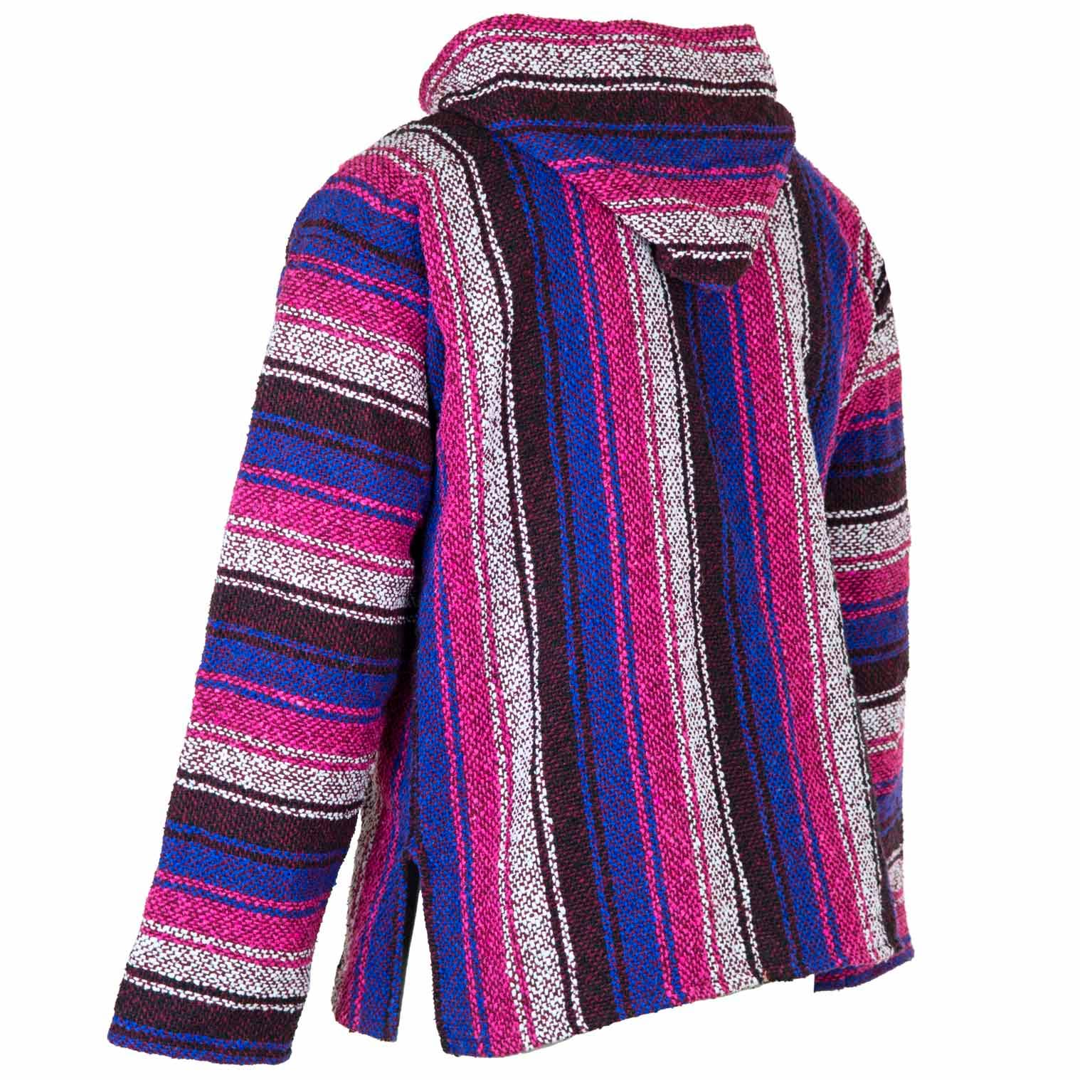 Our Mexican Baja tops are made using a cotton/acrylic yarn produced from recycled fabrics which makes them a great eco conscious choice. Popularised by 1970's North American surf culture, these relaxed hippy style classics have never gone out of fashion and are perfect for those cool summer nights in the festival field. With kangaroo pockets, a handy hood and a durable exterior with a soft, brushed interior; they are ever popular for outdoors activities.