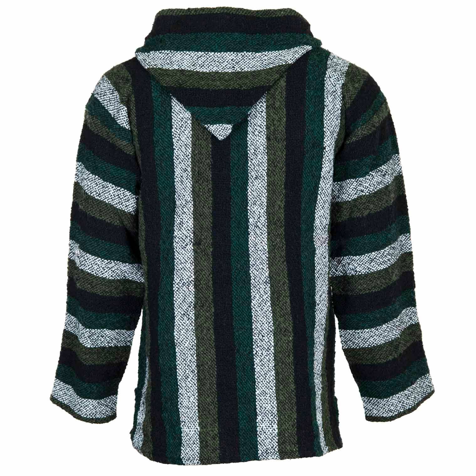 Our Mexican Baja tops are made using a cotton/acrylic yarn produced from recycled fabrics which makes them a great eco conscious choice. Popularised by 1970's North American surf culture, these relaxed hippy style classics have never gone out of fashion and are perfect for those cool summer nights in the festival field. With kangaroo pockets, a handy hood and a durable exterior with a soft, brushed interior; they are ever popular for outdoors activities.