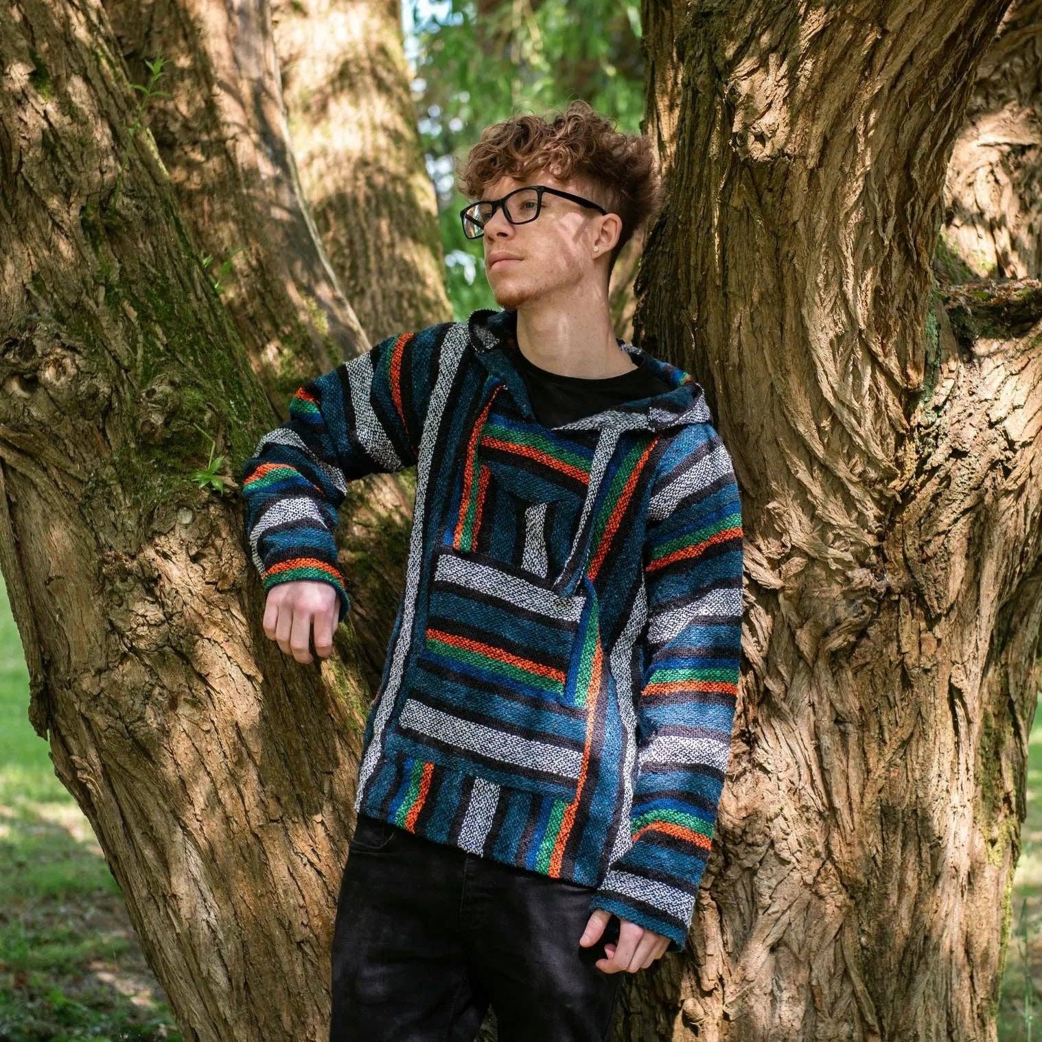 Baja hoodies are a classic staple of hippie style and festival wear. Originally made popular by surfers in California who brought them back from the Mexican Baja coast (hence the name). With their ties to the counter culture, and as they are so environmentally friendly, they have continued to be a popular hippy jumper choice.
